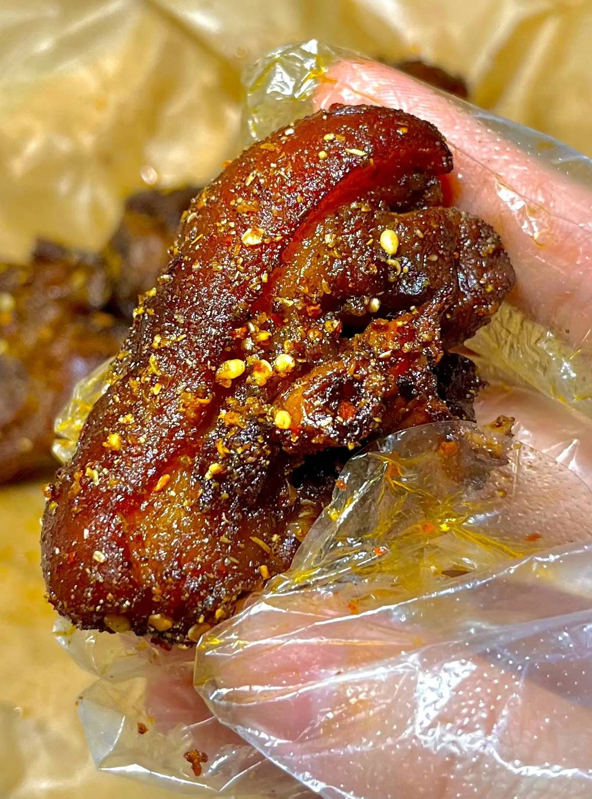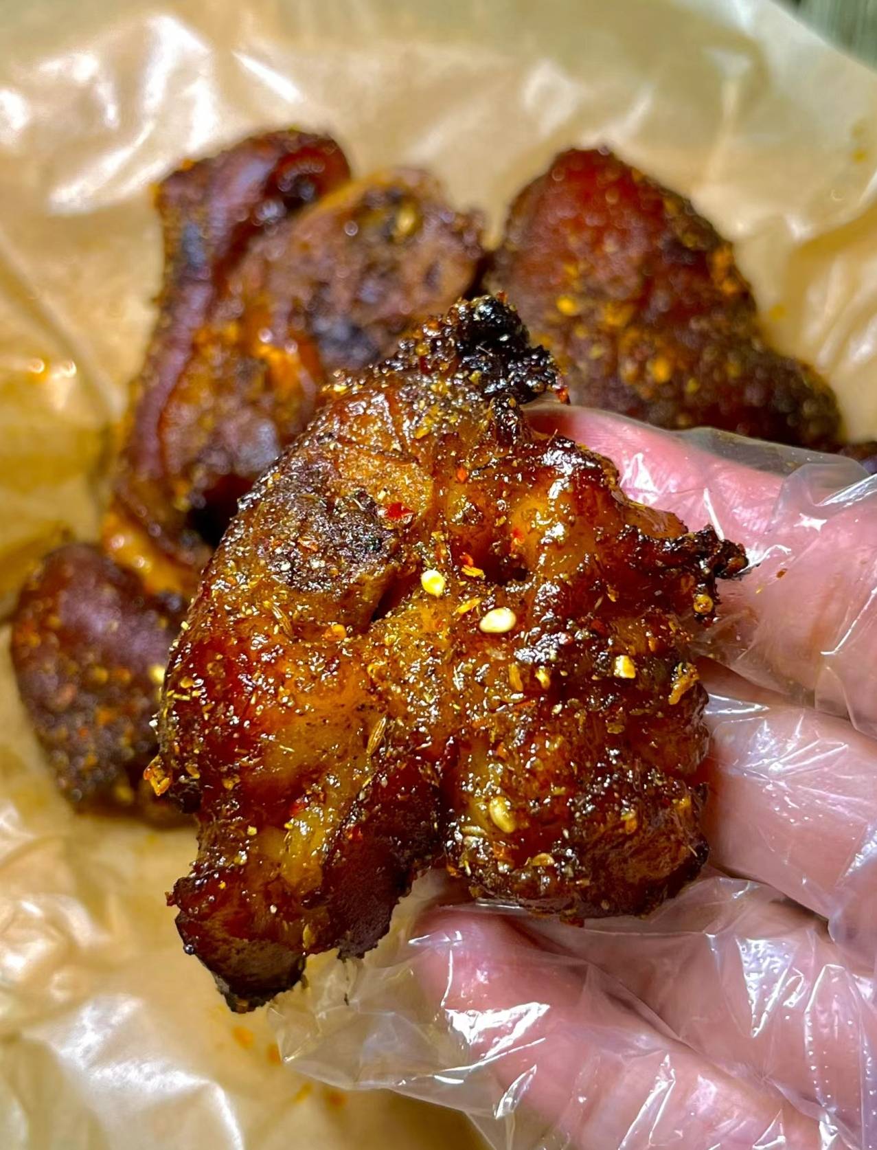 ### 美食品鉴指南:- **观察外观**:烤制后的猪蹄应呈现金黄色,外皮酥脆有光泽,内部肉质软烂不干硬。- **品尝口感**:咬下第一口,应该先是酥脆的外皮,紧接着是软糯的肉质,香辣味道层层递进,让人回味无穷。- **综合评价**:成功的香辣烤猪蹄,应该是色香味俱佳,既能作为宴客的大菜,也是深夜独自享受的美味佳肴。
