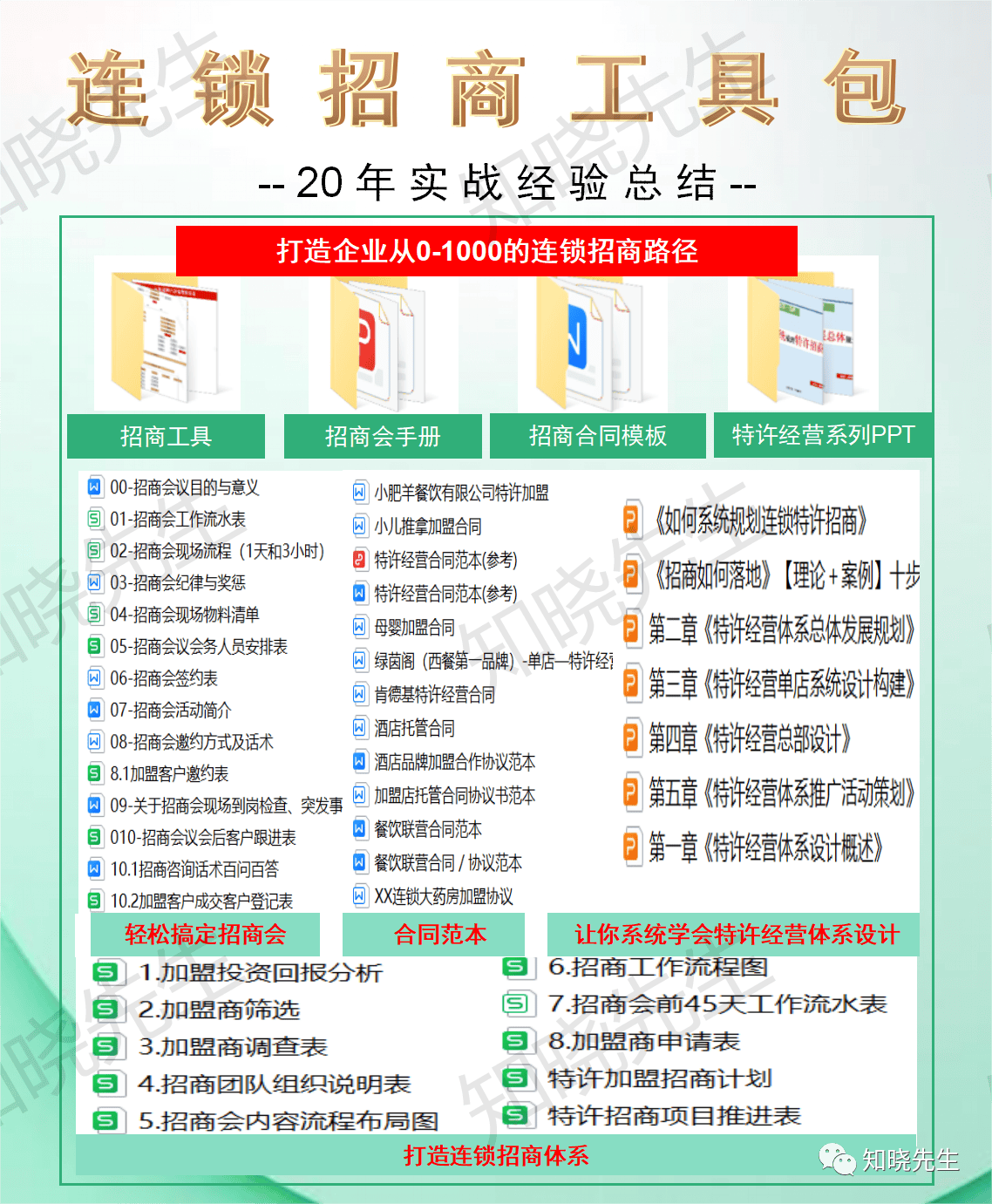 连锁专业学习、表单工具包,咨询合作联系,欢迎搜索关注公众号:知晓先生